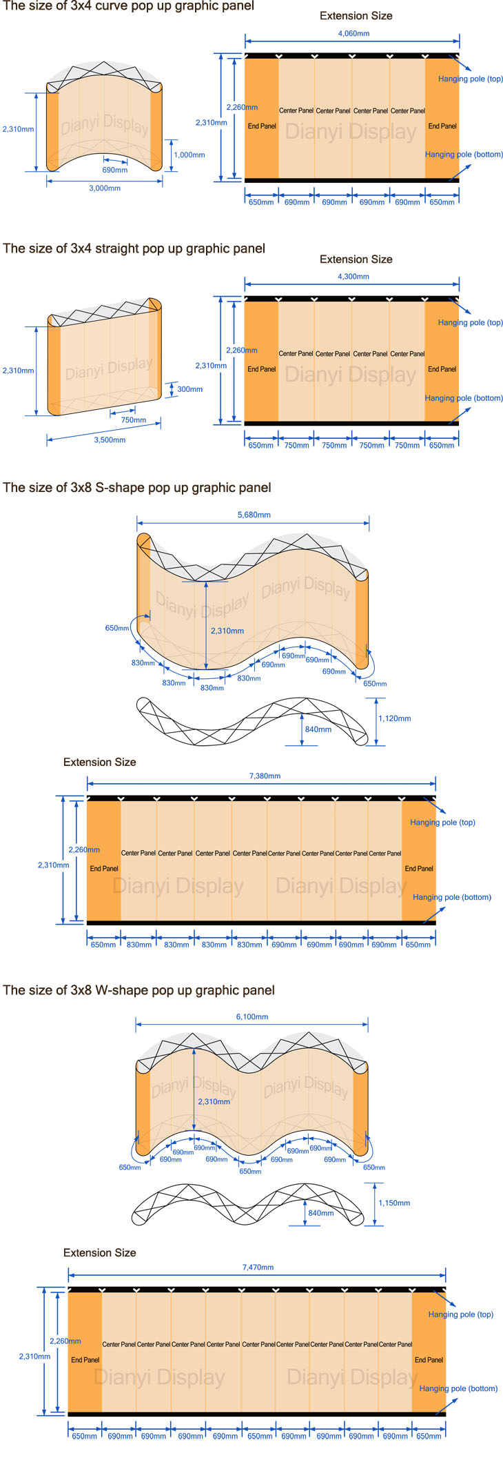 Pop up graphic panel sizes