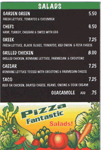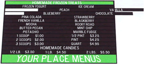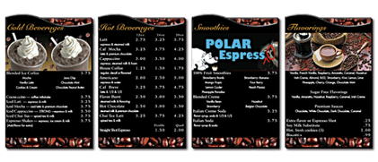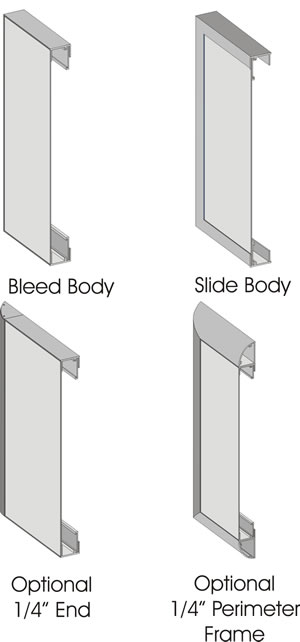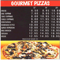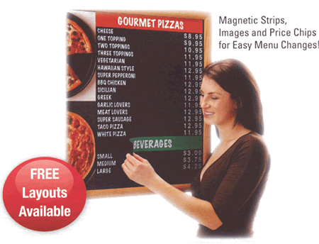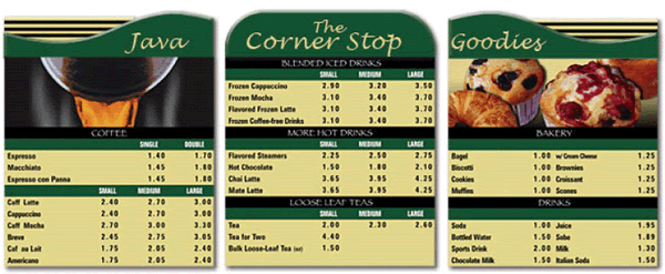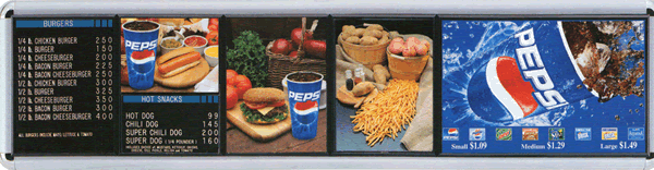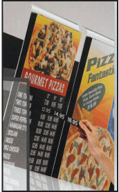 End user updateable transparent insert created from common ink jet or laser printers. Signage can easily be maintained and updated by the client through the use of familiar programs such as MS Word or MS Publisher.