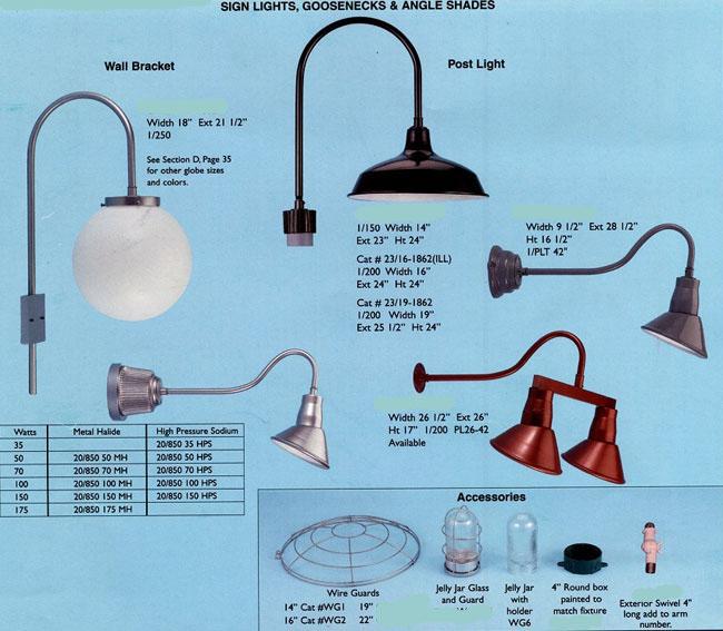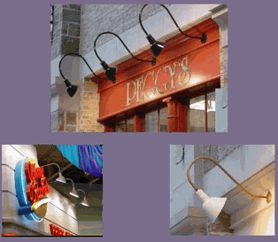 Gooseneck lighting is a unique lighting that originated with the desire to illuminate storefront signs. The initial style, as well as function, generated the need for compatible applications. Such as overhead lighting of courtyards, doorways, walks, and gardens.